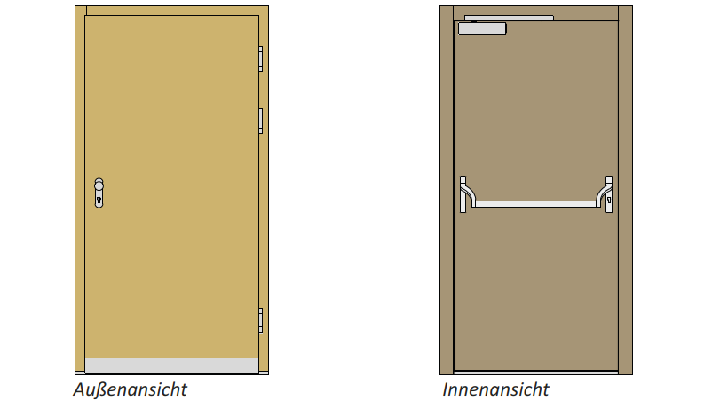 Die Ausstattung von Fluchttüren bestimmen die geltenden Normen, welche zwei Arten von Fluchttüren unterscheiden: