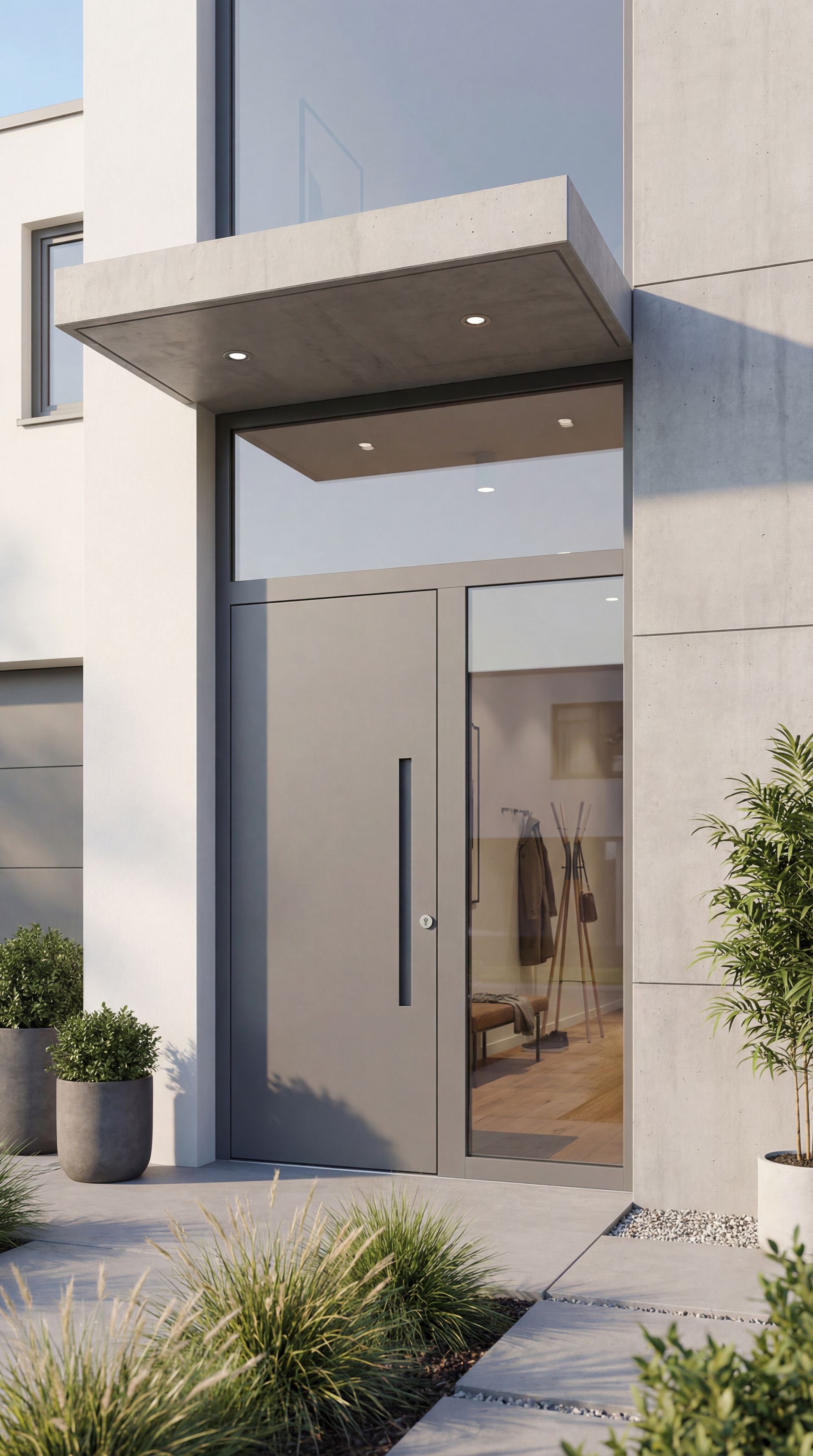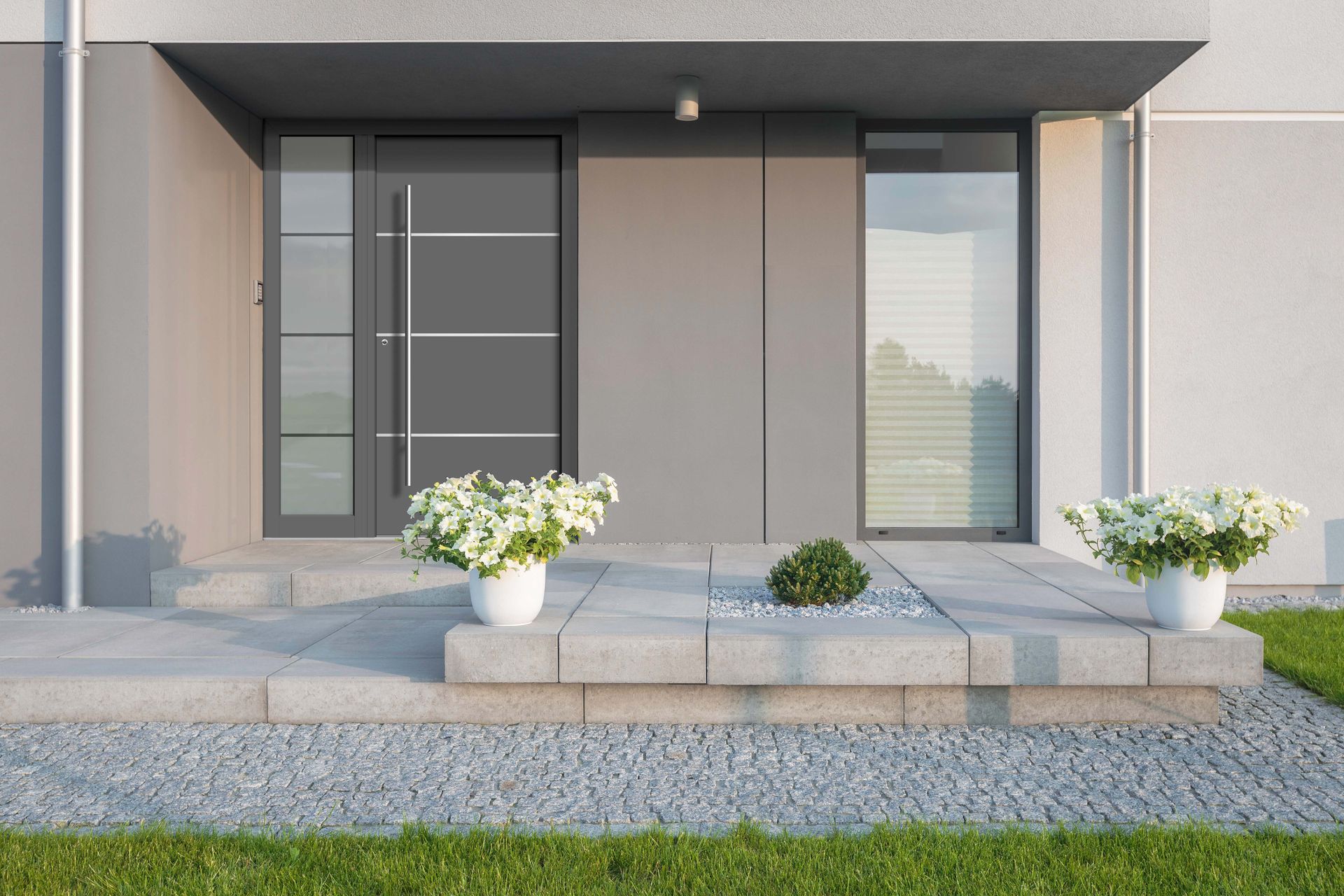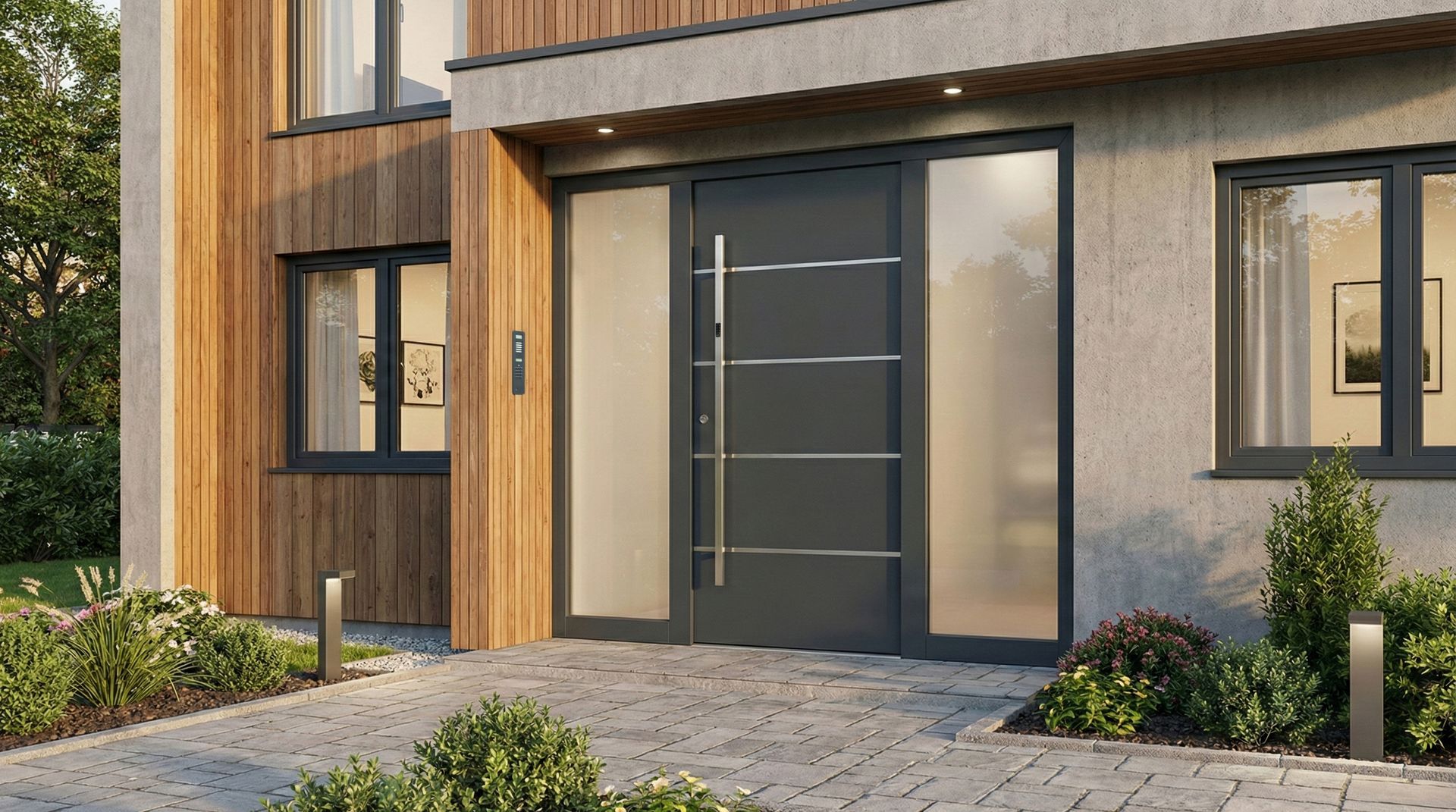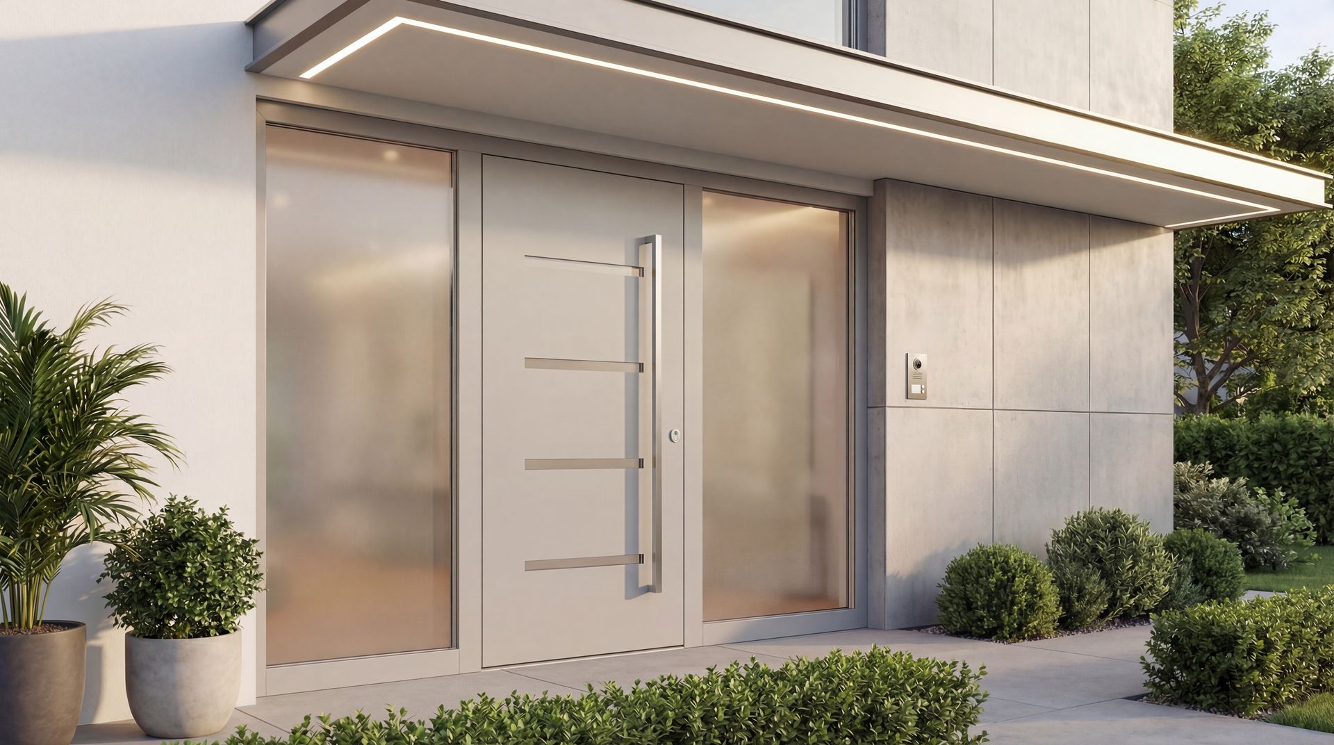 Unsere Holz-Alu Haustürenkollektion VETRO mit flächenbündigem Glasdesign ist perfekt für alle, die ein einzigartiges, künstlerisches Design für ihre Haustür suchen. Die schwarze Design-Verglasung verleiht jeder Tür ein fast dreidimensionales Aussehen. Glas schafft besondere Effekte im Raum und wird oft in modernen Häusern verwendet.