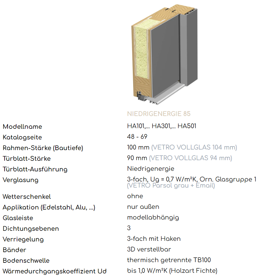 • Niedrigenergie Ausführung UD bis 1,0 W/(m2K)