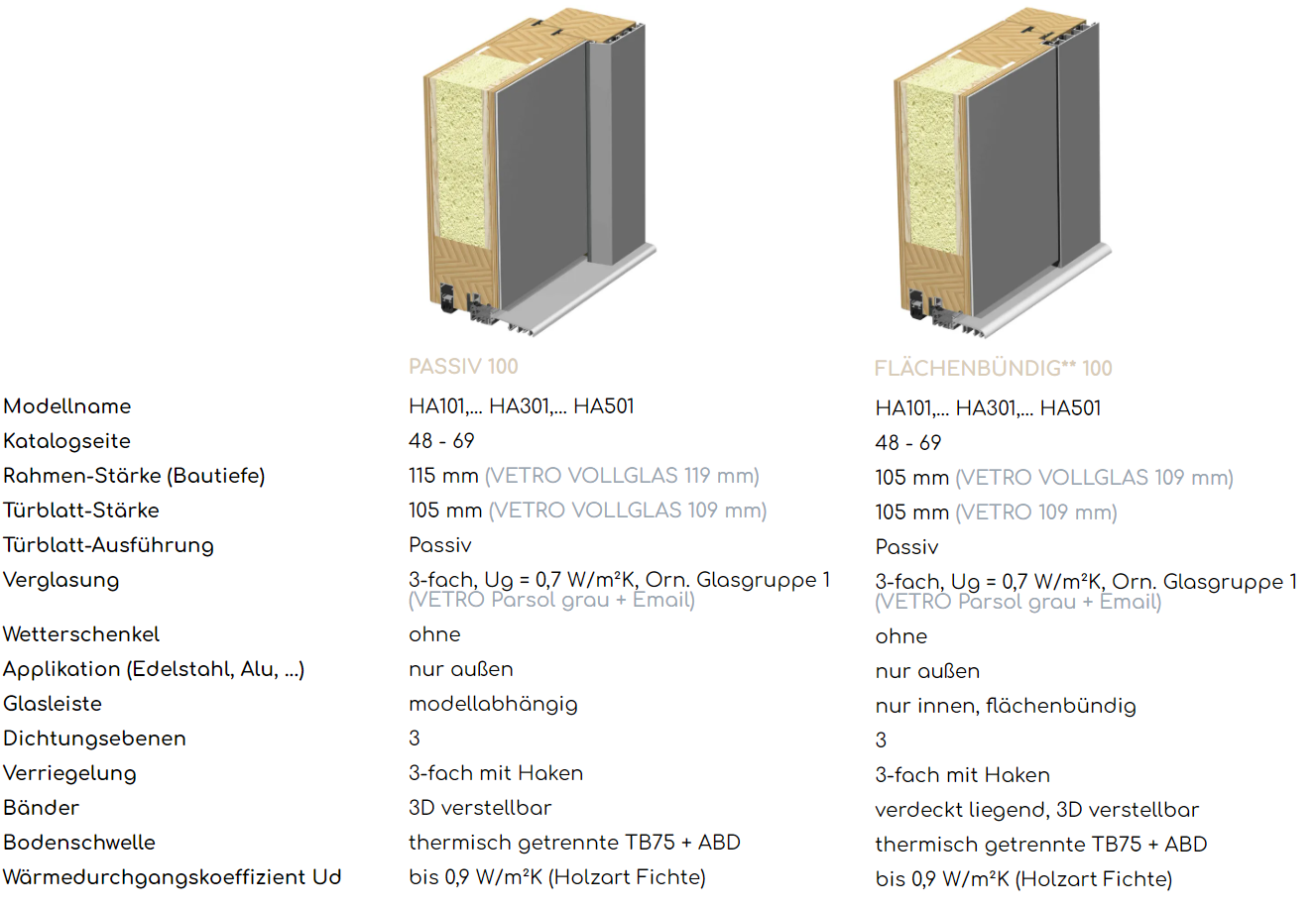 Systemschnitte Holz-Alu Haustüren